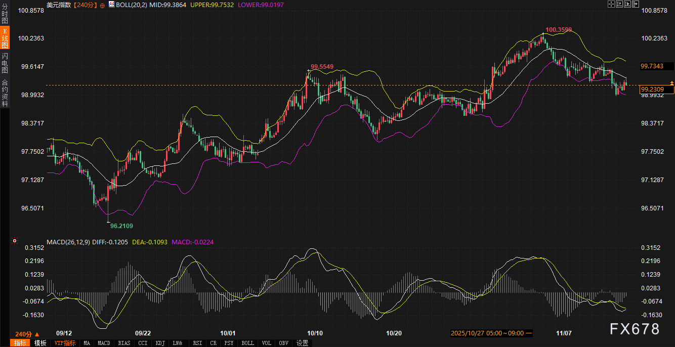 全球避险需求也支撑美债。地缘政治紧张与经济放缓担忧推动资金流入。芝加哥市宣布停止约100亿美元美债投资,但规模微小,未构成系统性影响。技术面看,10年期收益率跌破布林带中轨,MACD指标为负,下行动能仍存。支撑区间在4.00%-4.05%,阻力区间在4.12%-4.15%。